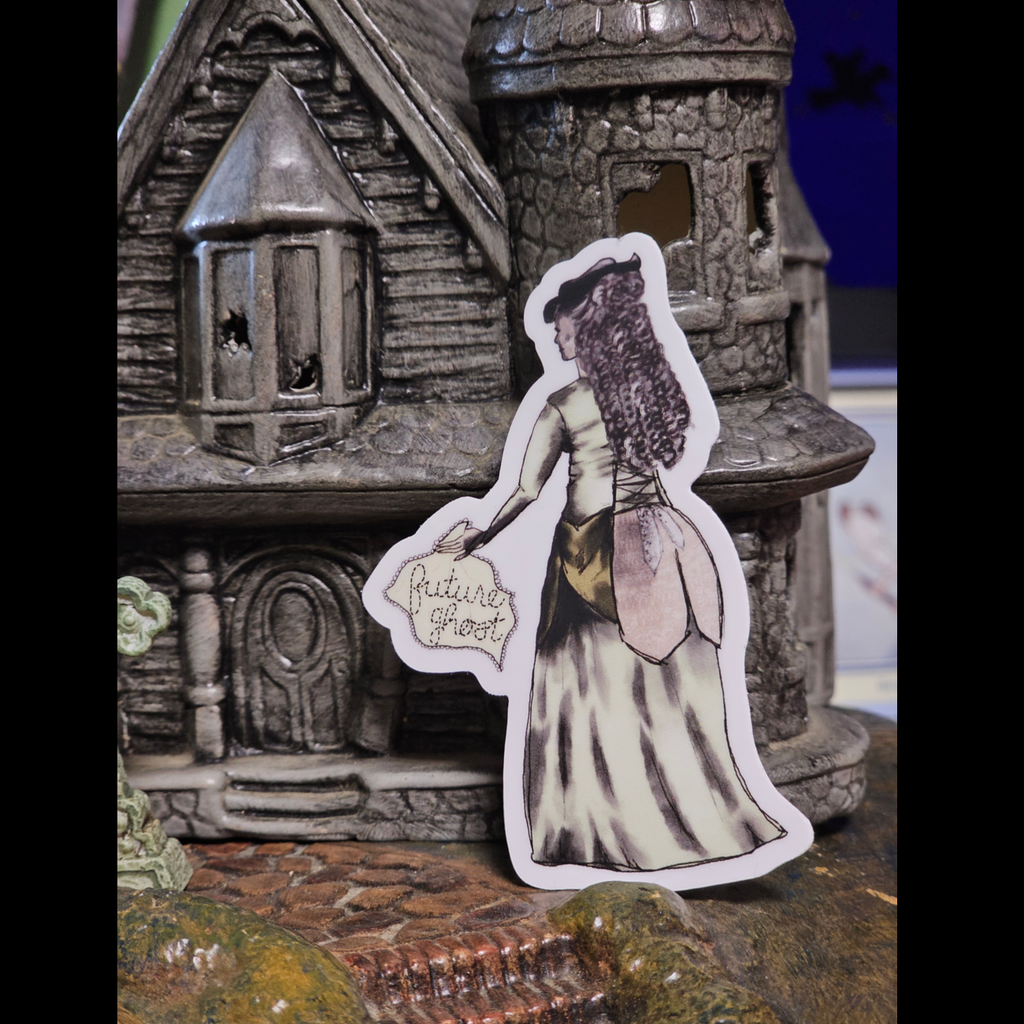 This 3" high quality die cut sticker is uniquely designed by our resident artist & Ghost Host Ambrosia Blake and printed on a thick, durable vinyl that protects your stickers from scratches, water, and sunlight. It's even dishwasher safe!