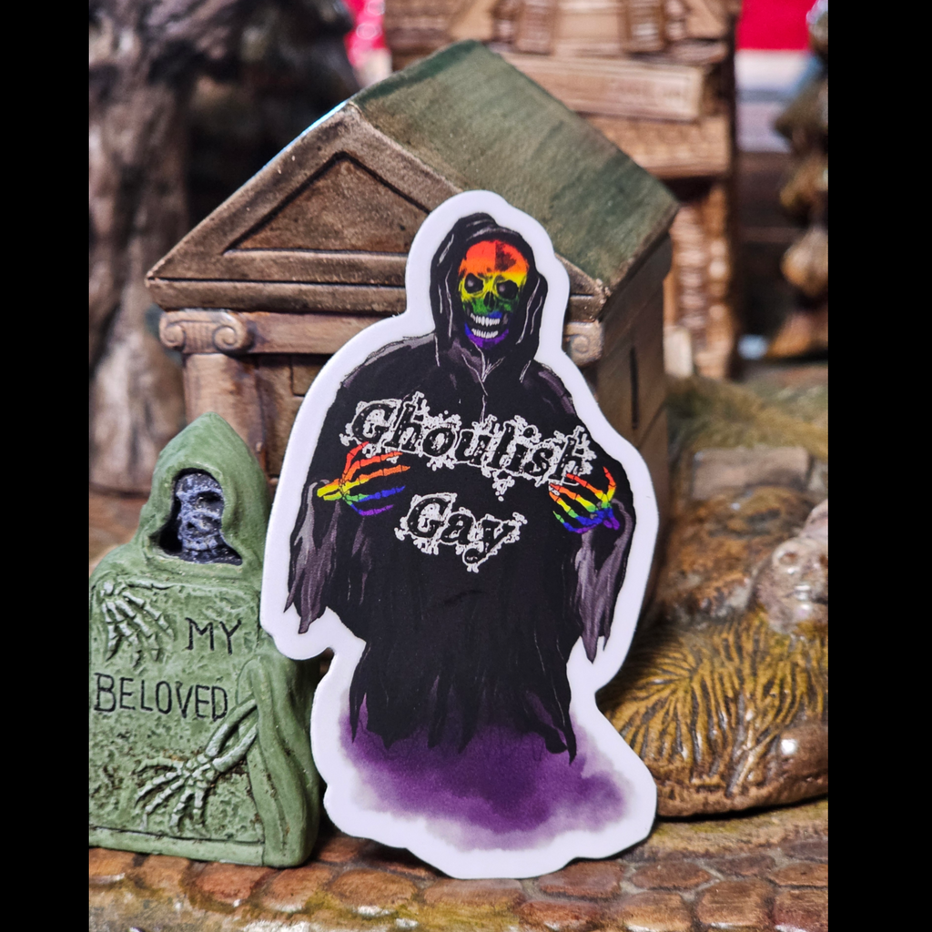 This 3" high quality die cut sticker is uniquely designed by our resident artist & Ghost Host Ambrosia Blake and printed on a thick, durable vinyl that protects your stickers from scratches, water, and sunlight. It's even dishwasher safe!